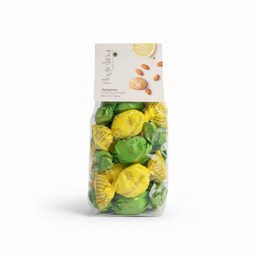 Savurează o fărâmă din tradiția dulce a Liguriei cu acești Amaretti di Sassello al limone, creați cu măiestrie de I Sapori dell'Arca. Spre deosebire de varianta crocantă, acești biscuiți artizanali sunt faimoși pentru textura lor incredibil de moale și miezul ușor umed, specific rețetelor din satul Sassello.