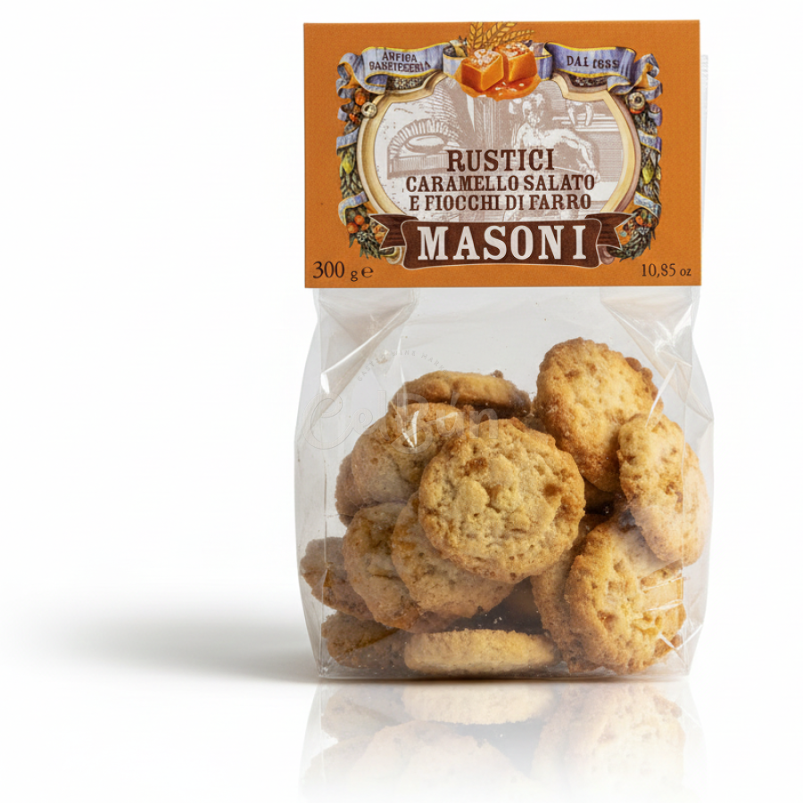 Savurează o combinație de arome îndrăzneață, dar echilibrată, cu Rustici Caramello Salato e Fiocchi di Farro de la renumita patiserie toscană Masoni, înființată în 1885. Acești biscuiți artizanali combină tradiția italiană cu un twist modern, oferind o gustare complexă și de neuitat.
